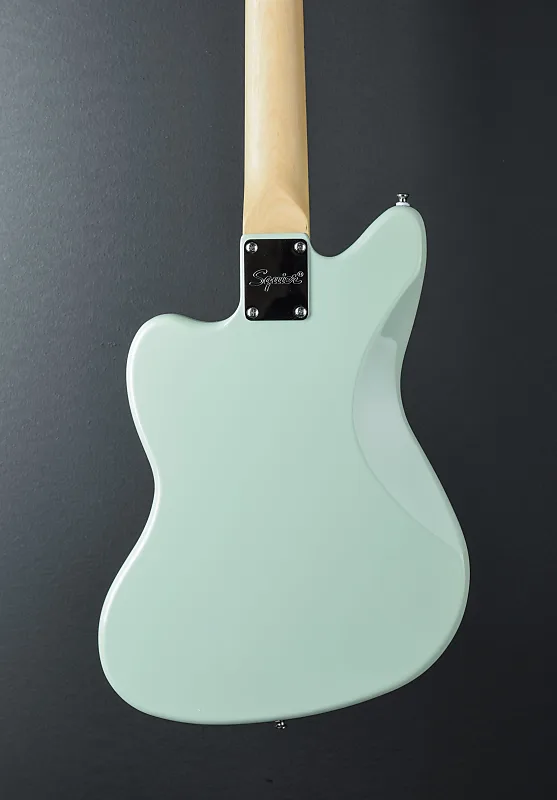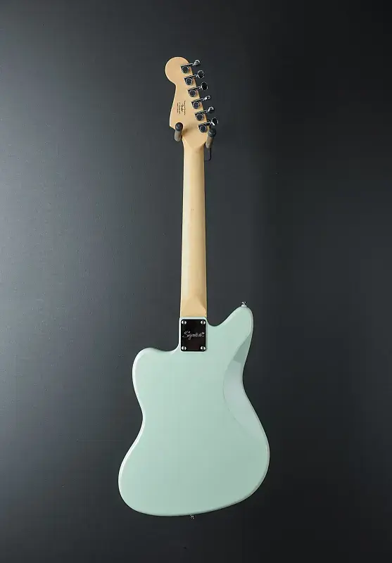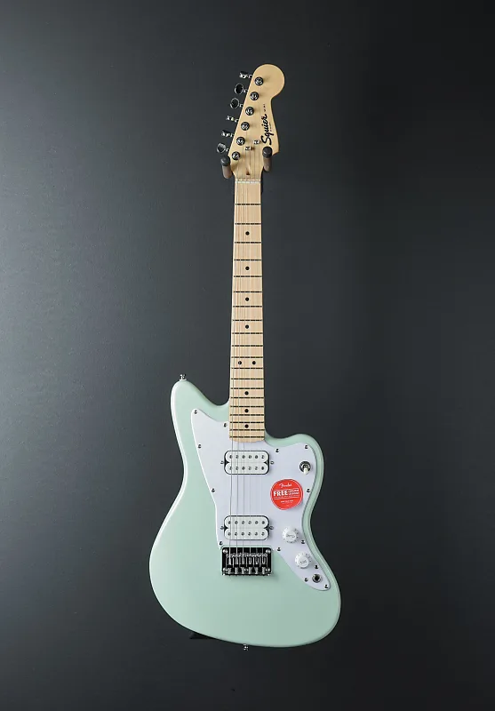 Surf Green, изготовлен в Индонезии, корпус из тополя, глянцевая полиуретановая отделка корпуса, гриф C-образной формы из клена с кленовым грифом радиусом 9,5 дюйма и узкими высокими ладами, длина мензуры 22,75 дюйма, ширина порожка 1,60 дюйма, стандартные хамбакинговые бридж и нековые звукосниматели Squier, 3-позиционное переключение с регуляторами общей громкости и тембра, шестиседельный бридж хардтейла, литые герметичные тюнеры, 7 фунтов, Чехол в комплект не входит