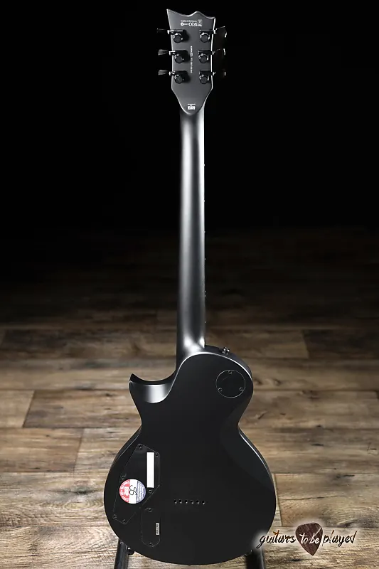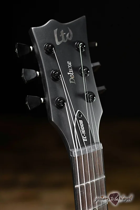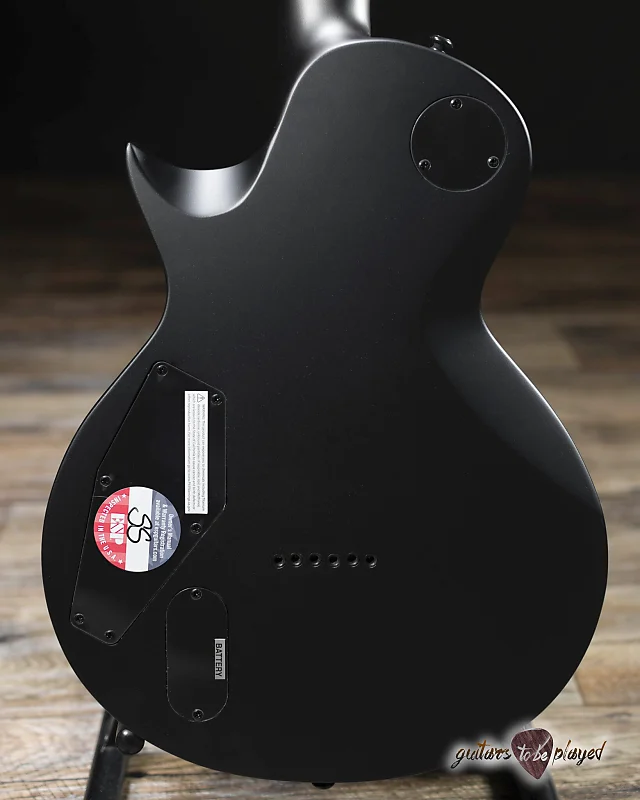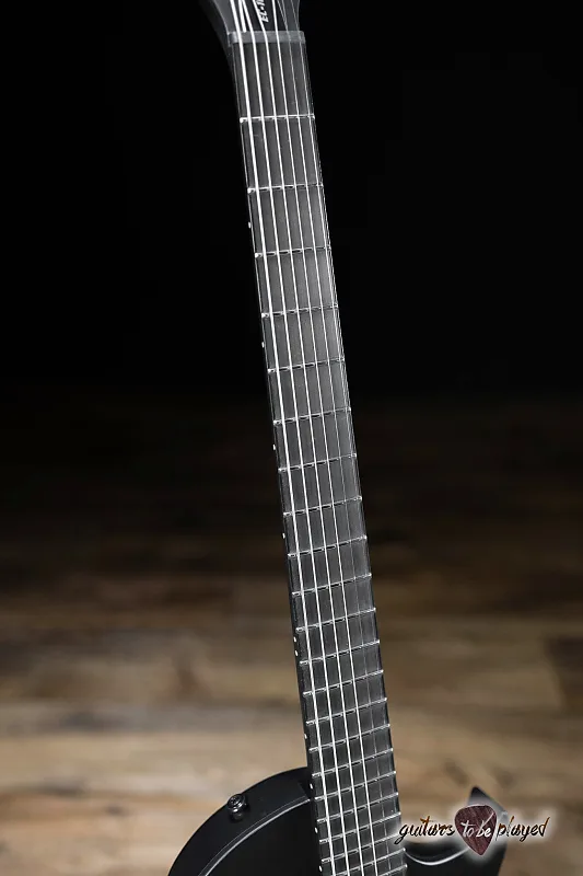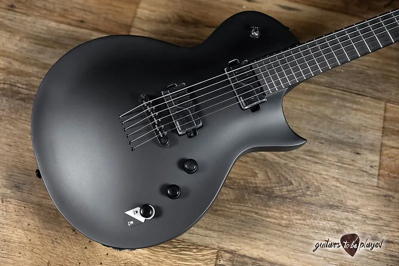 Ее темный минималистичный дизайн сочетает в себе вид отделки Charcoal Metallic Satin с черной однослойной окантовкой и грифом из эбена Макассара без вставок… кроме светящихся в темноте боковых точек Luminlay. EC-1000 Baritone оснащена 24 сверхбольшими ладами из нержавеющей стали, фиксирующим мостом TonePros TOM с проходящими струнами через корпус и мощными тоновыми возможностями благодаря прямому креплению активных звукоснимателей Fishman Fluence Modern Humbucker (алюминий на грифе и керамика на мосту) с управлением с выталкиванием для выбора звучания. и черные никелевые накладки.