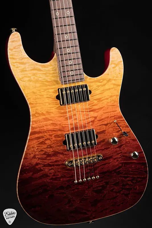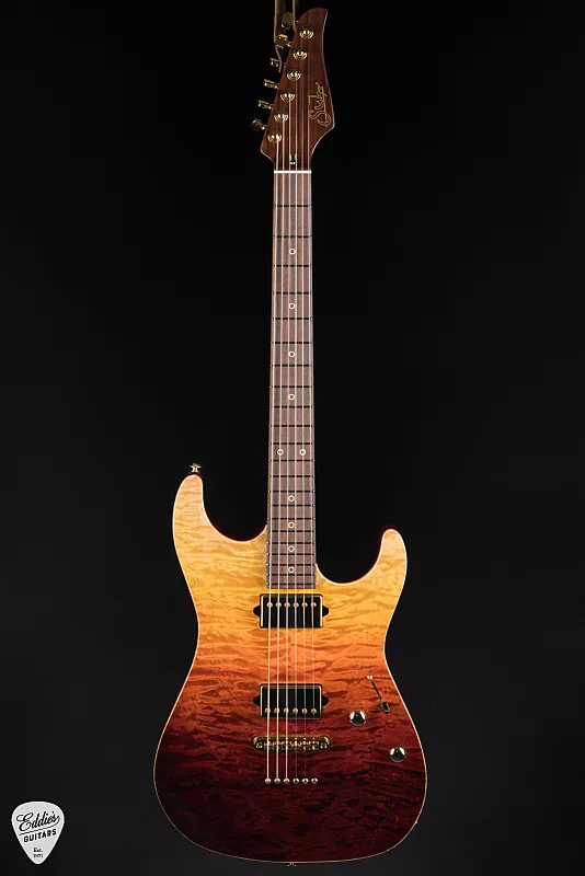 Гриф Suhr Standard из палисандра - Desert Gradient представляет собой образец элегантности, точности и чистой тональной мощи. Созданная для музыкантов, которые требуют роскоши без компромиссов, эта гитара обладает двухсекционным корпусом из махагони с изысканной крышкой из кленового хамелеона, обработанной с учетом контуров для руки, предплечья и тела для максимального комфорта. Отделка Desert Gradient плавно переходит цветами, как залитый солнцем горизонт, гармонично сочетая тепло и интенсивность в эстетике, столь же поразительной, как и ее звук.