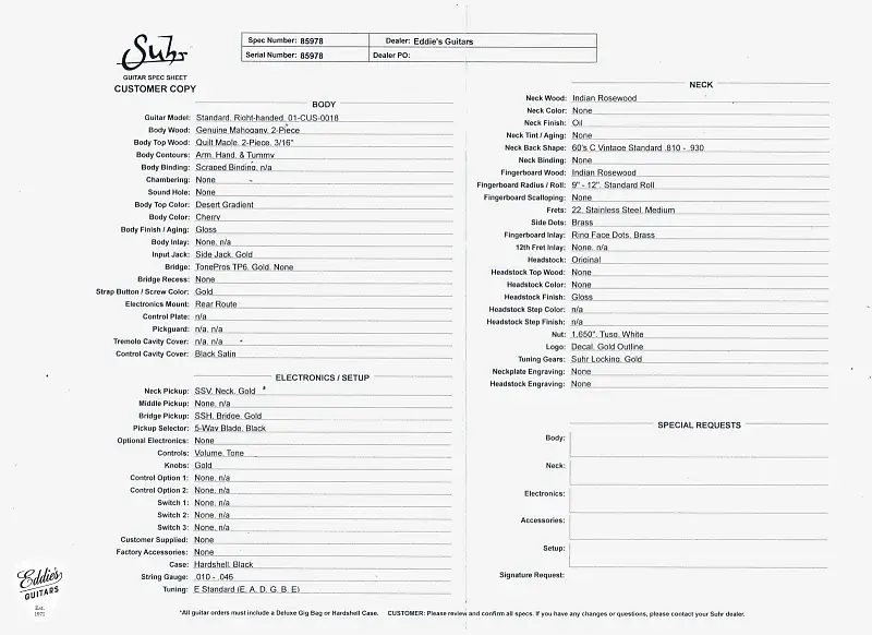 Для получения дополнительной информации о Suhr Standard, пожалуйста, свяжитесь с нами.