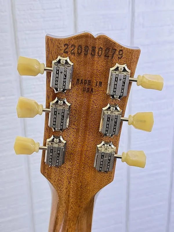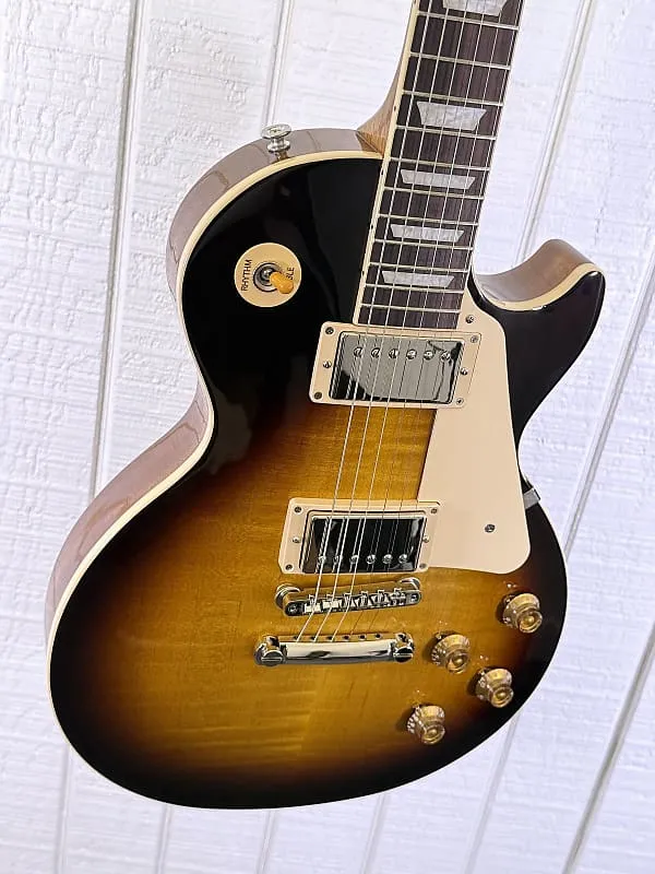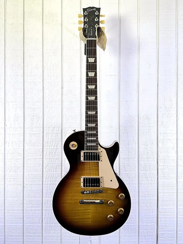 Новый Les Paul Standard возвращается к классическому дизайну, который сделал его актуальным, востребованным и любимым - формируя звук на протяжении поколений и в разных жанрах музыки. Он отдает дань Золотой Эпохе инноваций Gibson и возвращает подлинность в жизнь. Этот Les Paul Standard 50s имеет корпус из цельного красного дерева с фигурной кленовой декой. Теплота и средний диапазон красного дерева в сочетании с дополнительной атакой и яркостью клена создают звуковую основу всемирно известного тона модели Les Paul. Округлая шея в стиле 50-х из красного дерева приятно ощущается в руке и оснащена накладкой из индийского палисандра с инкрустацией акриловыми трапециями и 22 плавно играющими ладами среднего Jumbo размера. Радиус накладки 12" облегчает игру аккордов в первой позиции, оставаясь достаточно плоским, чтобы изгибы струн при соло не обрывали звук. Les Paul Standard 50s оснащена классическим мостом типа Tune-O-Matic ABR-1 и алюминиевым хвостовиком Stop Bar. Колки Vintage Deluxe имеют классические винтажные кнопки типа Keystone и, вместе с гайкой Graph Tech, обеспечивают устойчивость настройки на высоком уровне. Ручки управления выполнены в классическом золотом стиле Top Hat с указателями, чтобы вы всегда могли одним взглядом определить положение регуляторов. Калиброванные звукосниматели Burstbucker 1 (для грифа) и Burstbucker 2 (для бриджа) оснащены магнитами Alnico 2. Поскольку они являются хамбакерами, они менее восприимчивы к шуму и помехам, чем сингл-койл звукосниматели. Звукосниматели подключены к потенциометрам с аудио-кривой и конденсаторам Orange Drop, обеспечивая аутентичные тона, знаменитые для Les Paul Standard. В комплект также входит жесткий кейс Gibson.Ключевые характеристики:- Корпус из массива махагони без облегчения веса с вырезанной и фигурной декой Кленовая дека
