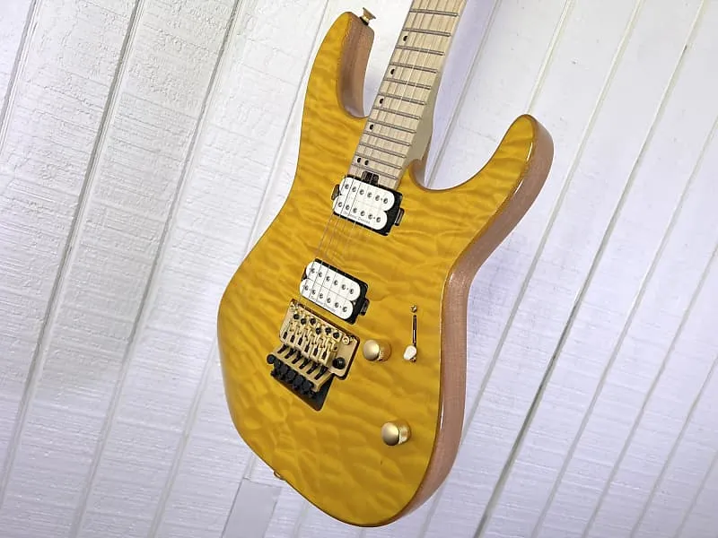 Pro-Mod DK24 HH FR M Mahogany с кленовой крышкой также оснащена утопленным тремоло-бриджем Floyd Rose 1000 Series с двойной фиксацией, обеспечивая высокую стабильность настройки и возможность радикального подъема высоты звука.