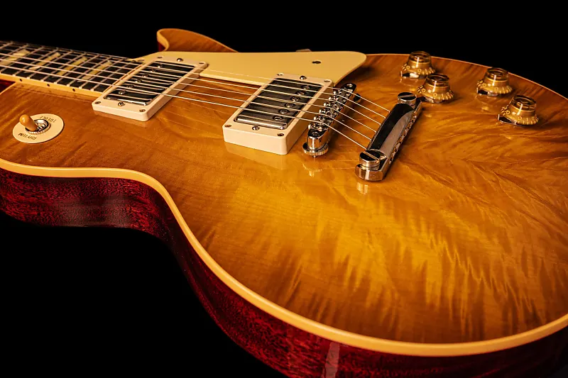 Les Paul Standard R9. Реиздание легендарного Les Paul Standard 1959 года. Гриф с длинным шипом, отделка нитро-лаком и звукосъемники Gibson Custombucker.