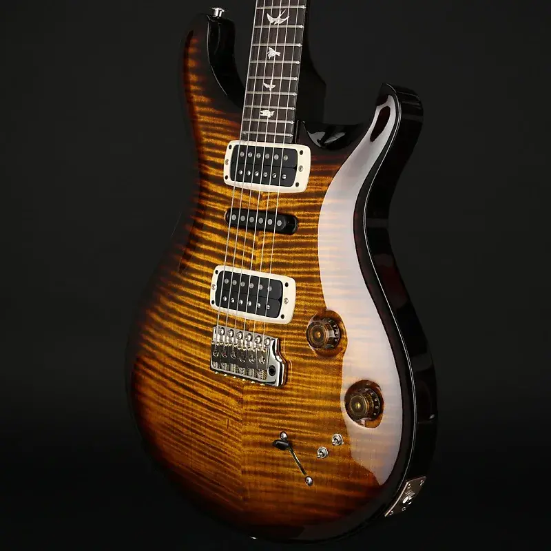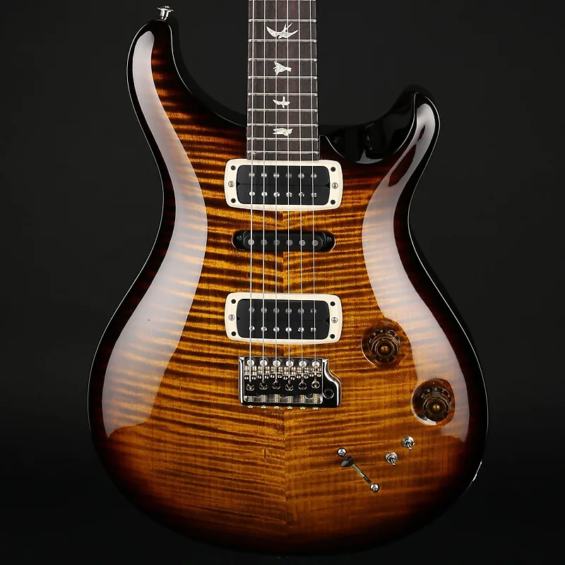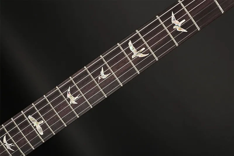 Дополнительные элементы включают кленовую накладку и заднюю панель из махагони, 22 ладовую накладку, длину мензуры 25”, гриф Pattern из махагони с накладкой из розового дерева, кость для подставки струн и фирменную PRS Gen III тремоло.