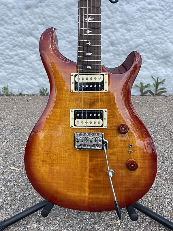 Классические элементы дизайна включают кленовую верхнюю дека, заднюю часть из красного дерева, гриф из палисандра, 24 лада, мензуру 25 дюймов, инкрустацию в виде птиц, фирменный логотип на головке грифа и фирменный тремоло-система PRS.