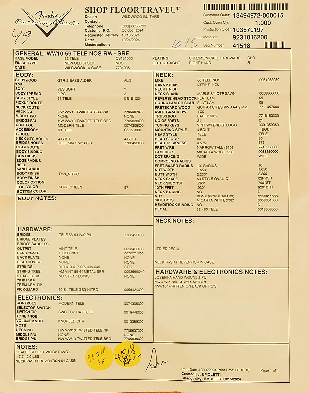 - Модель: Dealer Select Wildwood 10 '59 Telecaster