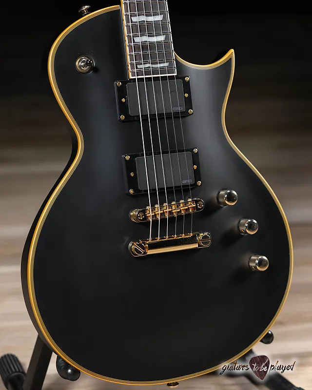 LTD Deluxe EC-1000 Vintage Black имеет элегантный матовый черный цвет, который выглядит стильно и подходит к любому вашему гардеробу! Эта гитара с золотой фурнитурой, завершающей винтажный облик, оснащена набором активных хамбакеров EMG: 60 в грифе и 81 у бриджа. Кроме того, она имеет 24 экстра-джамбо лада из нержавеющей стали и фиксированный мост TonePros с хвостовиком.