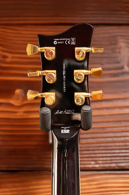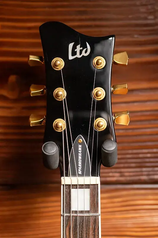 Sparrowhawk - это гитара серии LTD Signature для Билла Келлихера из уважаемой американской метал-группы Mastodon. У Sparrowhawk свой уникальный характер, при этом остаются некоторые классические элементы, которые делают ее выдающейся для различных жанров. Гитара оснащена комплектом звукоснимателей Seymour Duncan Distortion с индивидуальными крышками, а управление разделением катушек push-pull выполнено отдельно для каждого звукоснимателя, что обеспечивает разнообразие тонов (поднимите ручку тона для разделения катушки нек-пикапа и ручку громкости для разделения катушки бридж-пикапа). Sparrowhawk имеет плотное и удобное ощущение игры, корпус из красного дерева с кленовой накладкой, конструкцию set-thru и плавное соединение грифа для быстрого доступа к верхним ладам. Она также оснащена трехсекционным грифом из красного дерева, грифовой накладкой из эбенового дерева с блоковыми инкрустациями на 22 ладах и струнодержателем с фиксатором TonePros TOM для стабильности и сустейна.