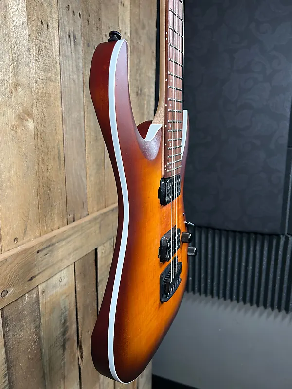 Ibanez RGA42FM - Dragon Eye Burst Flat (DEF) выделяется в серии RGA Standard, выпущенной около 2017 года. Производится в Индонезии и остается популярной благодаря исключительному ощущению игры и звучанию.