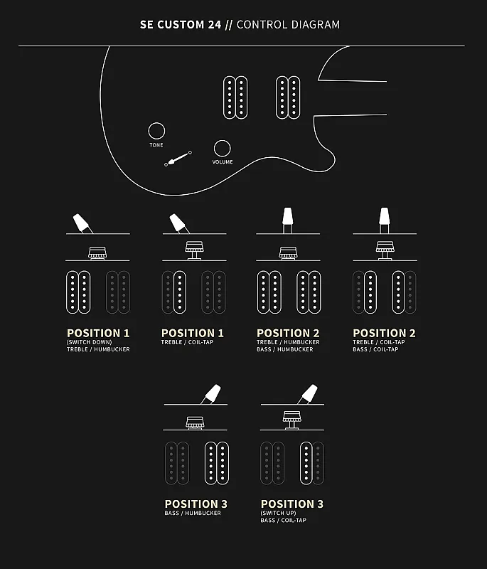 Регулировки: Регулятор громкости и регулятор тембра с функцией Push/Pull и 3-позиционный переключатель звукоснимателей