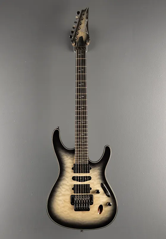 Deep Space Blonde, верхняя дека из клена с рельефной текстурой на корпусе из африканского махагони, гриф из трех частей клена/пурпурного дерева Wizard III с радиусом 15,75" и 24 джамбо-ладов с инкрустацией Beaten Path на накладке из эбенового дерева, мензура 25,5", ширина верхнего порожка 1 11/16", звукосниматели DiMarzio Pandemonium для грифа и бриджа, DiMarzio True Velvet для средней позиции, 5-позиционный переключатель с регулировкой громкости и тона, бридж Edge-Zero II, закрытые колки, вес 7,3 фунта, поставляется с чехлом.