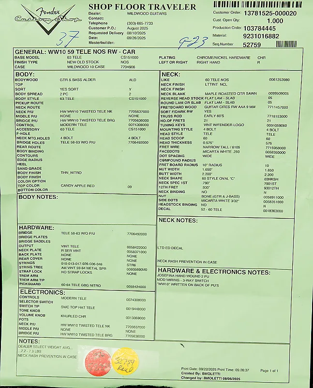 - Модель: Dealer Select Wildwood 10 1959 Telecaster