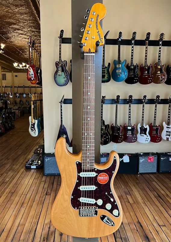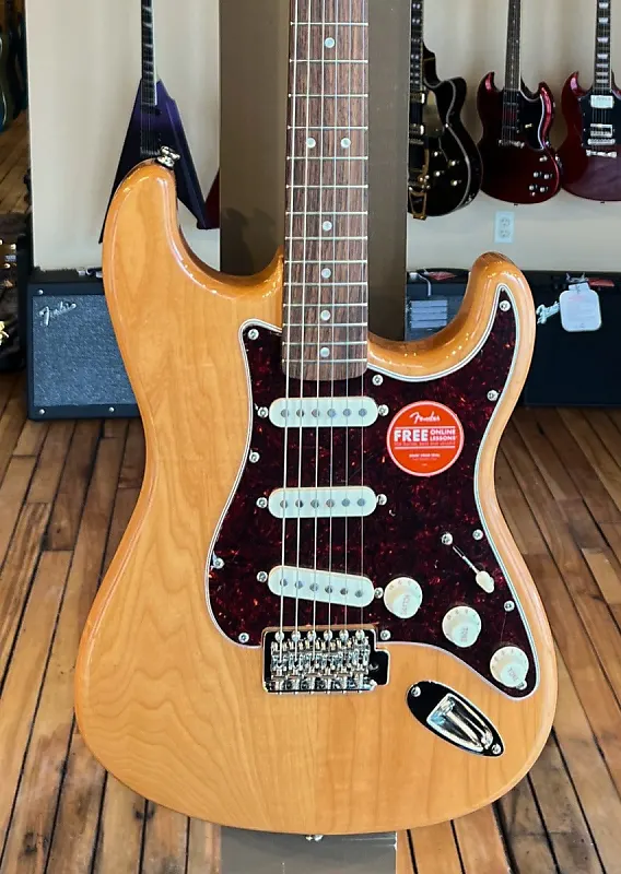 «Отдаем дань уважения моделям Strat с большой головой грифа, выпускавшихся в 1970-х годах: Classic Vibe ‘70s Stratocaster создает невероятное звучание благодаря трио сингл-койл звукоснимателей Fender, разработанных по рисунку Alnico. Удобные для игрока особенности включают тонкий и комфортный профиль грифа «C» с легкоиграбельной накладкой радиусом 9,5″ и высокими узкими ладами, а также тремоло-систему в винтажном стиле для выразительных эффектов сгибания струн. Эта ретро-модель Squier также имеет маркировку головы грифа в стиле 1970-х годов, богатый внешний вид никелированной фурнитуры и глянцевую отделку грифа с винтажной тонировкой для старинного звучания.»