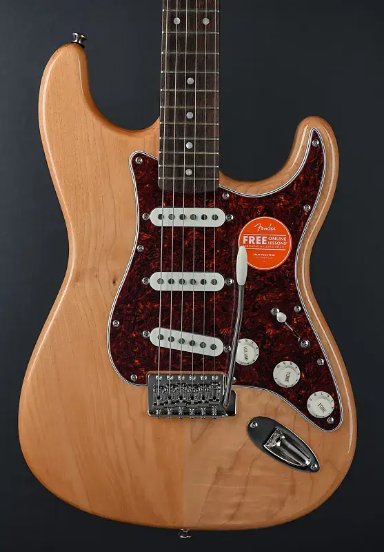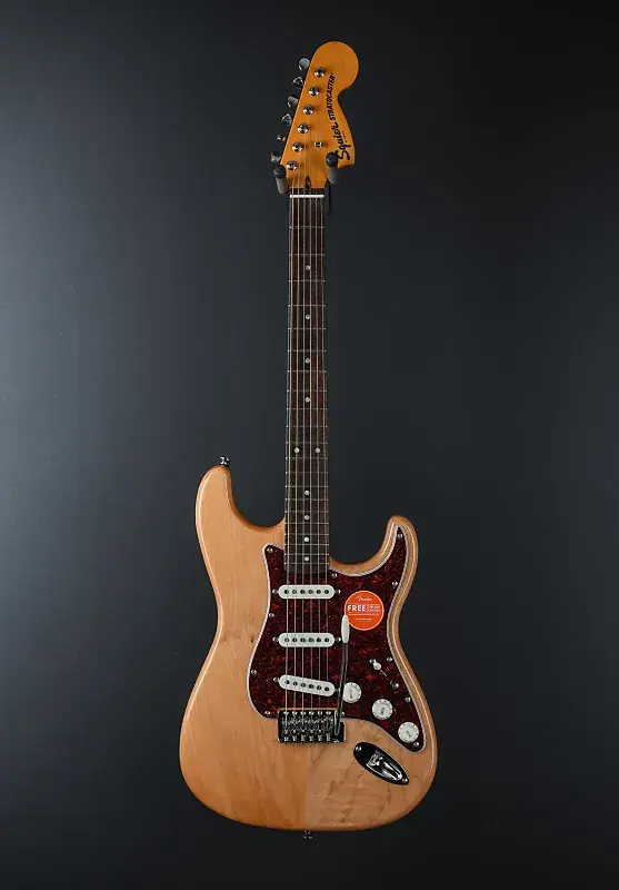 «Отдаем дань уважения моделям Strat с большой головой грифа, выпускавшихся в 1970-х годах: Classic Vibe ‘70s Stratocaster создает невероятное звучание благодаря трио сингл-койл звукоснимателей Fender, разработанных по рисунку Alnico. Удобные для игрока особенности включают тонкий и комфортный профиль грифа «C» с легкоиграбельной накладкой радиусом 9,5″ и высокими узкими ладами, а также тремоло-систему в винтажном стиле для выразительных эффектов сгибания струн. Эта ретро-модель Squier также имеет маркировку головы грифа в стиле 1970-х годов, богатый внешний вид никелированной фурнитуры и глянцевую отделку грифа с винтажной тонировкой для старинного звучания.»