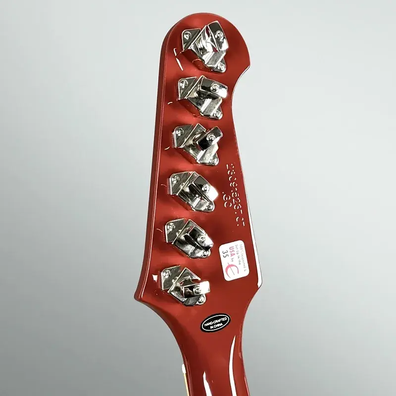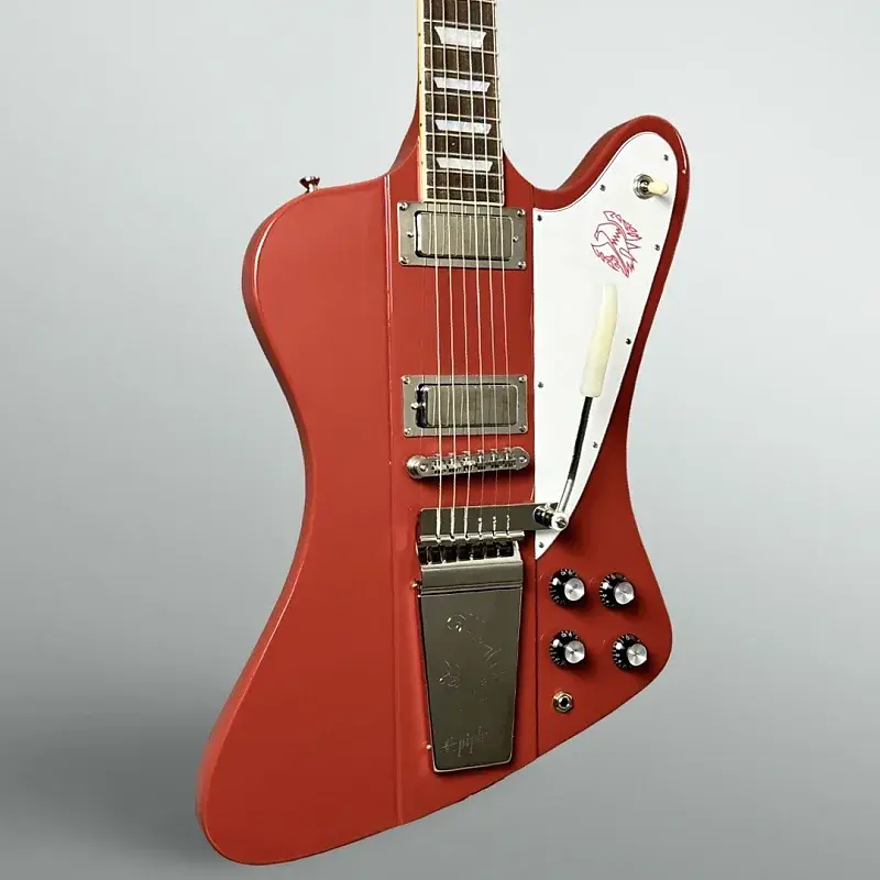 Epiphone 1963 Firebird V - это точная дань уважения культовой Gibson Firebird V во всей ее винтажной славе. Конструкция этой гитары с 9-слойной ламинированной шейкой из махагони и ореха и корпусом из махагони идеально воссоздает Firebird V. Заканчивается она всеми историческими особенностями Firebird V, включая ступенчатую головку грифа, накладку-пикгарду в виде феникса и банжоподобные планетарные колки Kluson.
