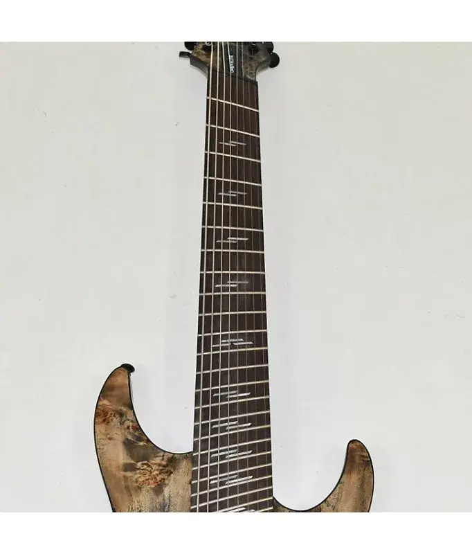 Гриф Omen Elite-8, выполненный из клена и с накладкой из палисандра, обеспечивает плавную игру и богатую тональную основу. Инновационная многомасштабная конструкция предлагает оптимальное натяжение струн и эргономику, что важно как для комфорта, так и для чистоты звука при игре на гитарах расширенного диапазона.