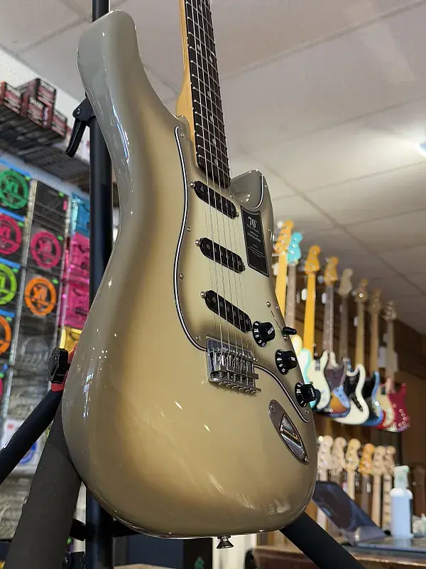 Представляем коллекцию Stratocaster 70th Anniversary: празднование семи десятилетий вечного звучания и культового стиля. Каждая модель 70th Anniversary Stratocaster демонстрирует богатое наследие и легендарное звучание, которые сделали Strat непревзойденной иконой. От любителей винтажного звучания до прогрессивных музыкантов, ищущих передовые функции, - можете быть уверены, что найдется модель, которая оправдает ваши ожидания. Погрузитесь в наследие Stratocaster и станьте обладателем части истории Fender с коллекцией 70th Anniversary Stratocaster.