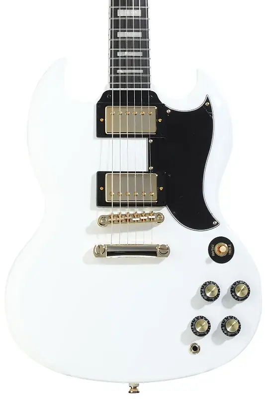 Электрогитара с цельным корпусом с кленовой дека, корпусом из красного дерева, грифом из красного дерева, накладкой из эбенового дерева и двумя хамбакерными звукоснимателями - альпийский белый.