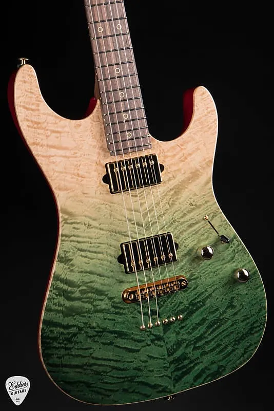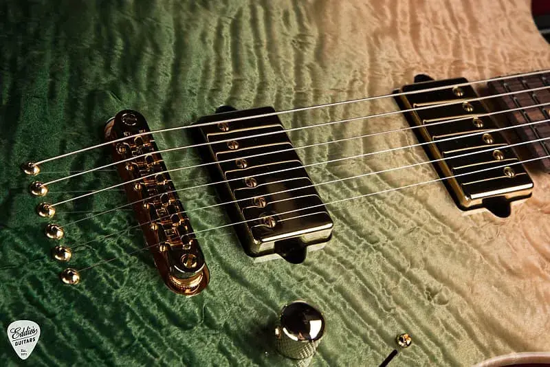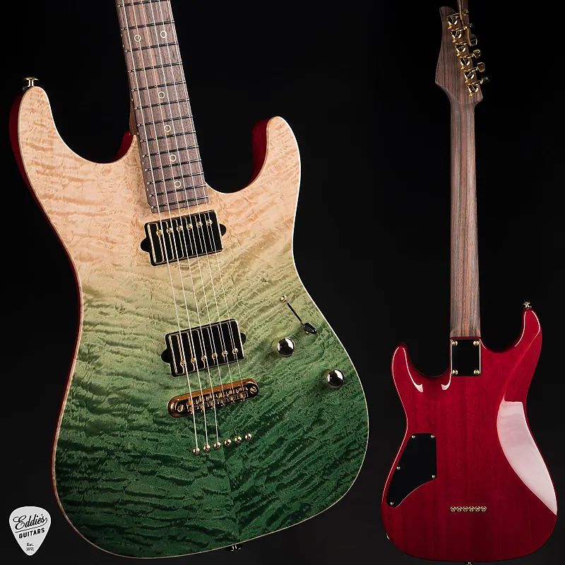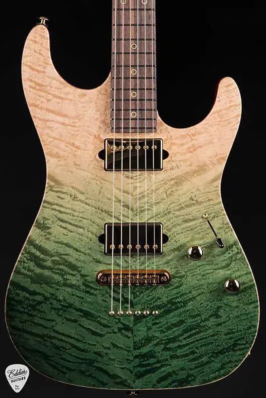 Весом всего 7 фунтов 3 унции, Suhr Standard легко держать в руках, но он наполнен динамической мощью, готовый передать огонь игрока, решившегося на музыку с ним. Хранившийся в жестком кейсе, этот инструмент - больше, чем просто гитара - это выражение, муза, оружие самовыражения, созданное мастером современной электрогитары. Будь то на сцене, в студии или в руках художника, стремящегося к идеальной ноте, Suhr Standard Rosewood Neck - Green Gradient - это гитара, которая не просто играет - она требует, чтобы ее играли.