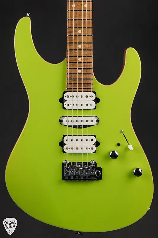 Смелый, яркий и созданный для работы на высшем уровне, Suhr Modern Roasted - Lime Green Metallic - это настоящий шедевр с умом, мощью и невероятной тональной универсальностью. Эта гитара не просто привлекает взгляд - она требует внимания. Окутанная электризующим покрытием Fuchsia Sparkle с изысканной обвязкой с эффектом скрейпа, она сочетает фирменный современный дизайн Suhr с винтажным хот-род стилем, который буквально светится под сценическим освещением.
