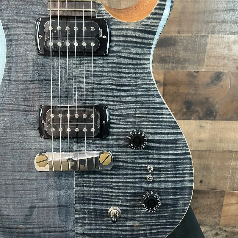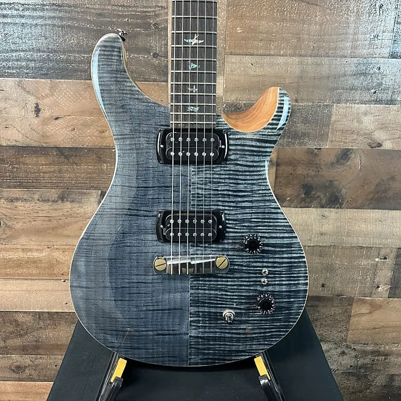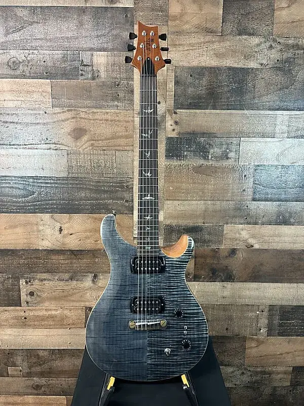 угольная электрогитара с цельным корпусом и кленовым верхом, корпус и гриф из красного дерева, палисандровый гриф и 2 звукоснимателя Coil-taped Humbucking, угольная отделка, чехол PRS в комплекте