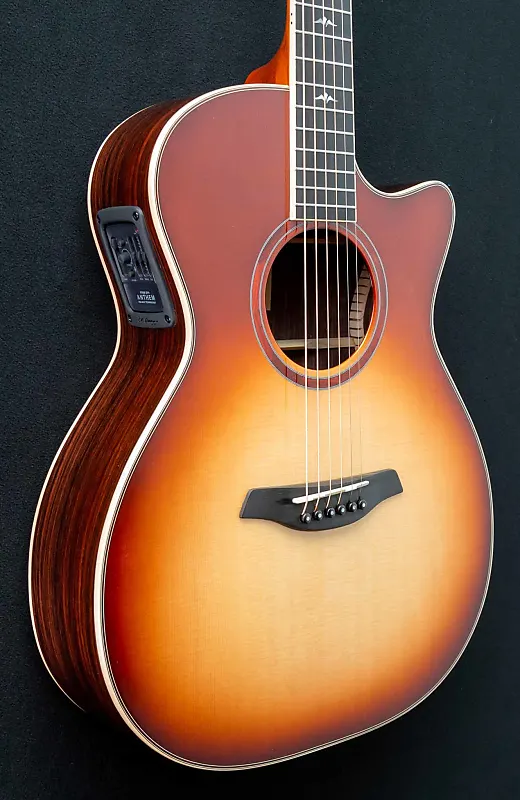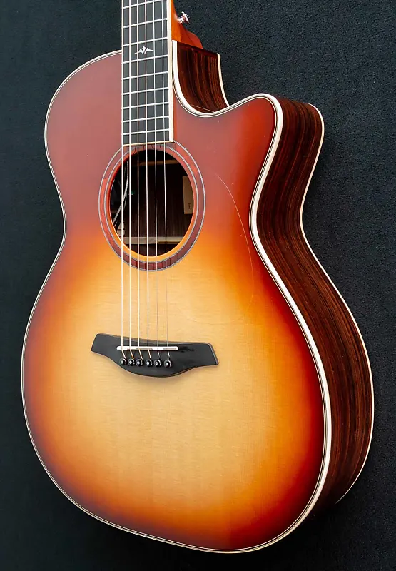 Модель Furch Orange Master's Choice Orchestra с вырезом - это гитара премиум-класса, полностью изготовленная из массива дерева, изготовленная из высококачественных материалов. Дека изготовлена из ситхинской ели, а задняя и боковые стороны - из индийского палисандра. Красота этих тонов дерева подчеркивается многочисленными дополнениями - корпус из пламенного клена, окантовка грифа и головки грифа, розетка из падаука и концентрического кольца, а также инкрустация грифа в форме цветка из перламутра. Корпус защищен запатентованной компанией Furch отделкой Full-Pore High-Gloss Finish, разработанной для улучшения резонансных качеств древесины в тон. Благодаря сочетанию высококачественных материалов, звучанию деки, уникальной отделке и эксклюзивному оснащению, гитара Furch Orange Master's Choice отличается привлекательным внешним видом и прекрасными акустическими качествами. Он выдает полный, сбалансированный, чистый звук.