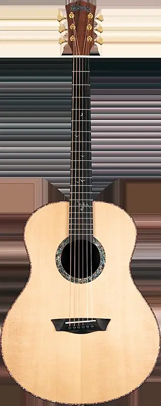 Bella Tono Elegante S24S имеет все, о чем может мечтать гитарист-акустик, и даже больше. Она оснащена верхней декой из цельного спруса и невероятно красивыми спиной и обечайками из Pau Ferro. Звукосниматель украшен потрясающим абалоном как на розетке, так и на окантовке, что дополнительно подчеркнуто насыщенным оттенком Padauk и окантовкой из эбена. Накладка из эбена продолжается пышными вставками из абалона, изображающими сцену с горами и летящими птицами. Корпус Washburn Studio обеспечивает невероятно комфортное ощущение во время игры, при этом сохраняя четкие низкие частоты, сфокусированные средние и чистые высокие, обычно присущие гитарам с большими корпусами. Цельная верхняя дека из спруса помогает раскрыть все нюансы звучания инструмента на протяжении всего диапазона. Ее полная мензура 25,5 дюйма создает непревзойденное чувство знакомости для исполнителя, а шея из махагони с сатинированной отделкой и современным профилем "C" является гладкое и уютное ощущение в руках.