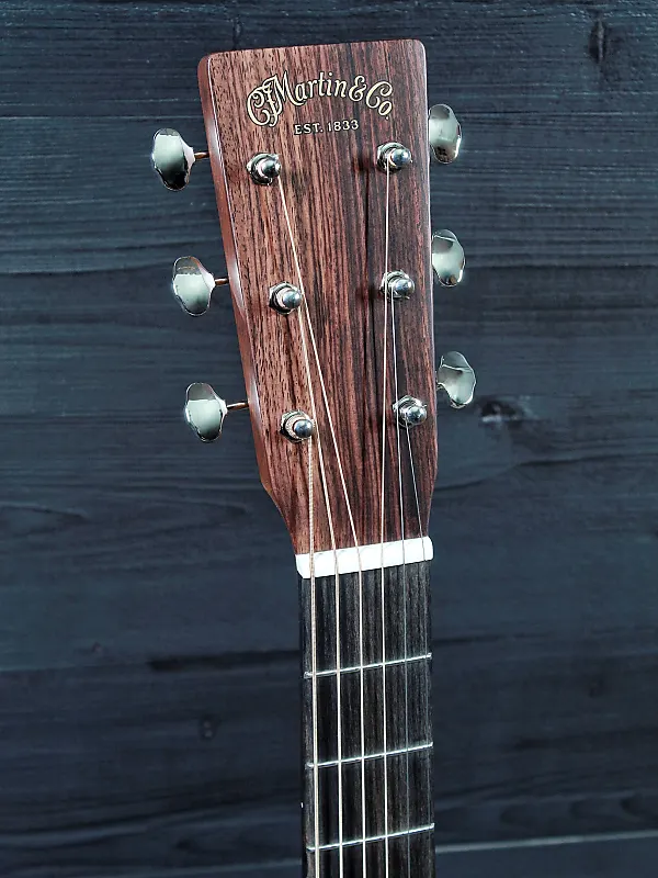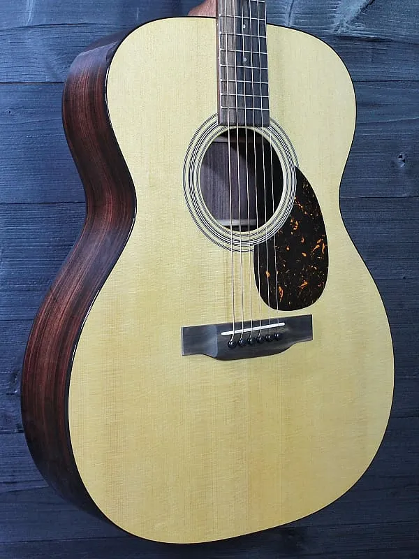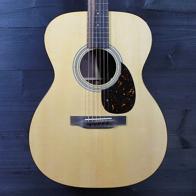 Martin OM 21 Standard Series. Известная своей игрой пальцами и исключительным тональным балансом, эта оркестровая модель имеет волнистую X-образную распорку верха, которая создает богатый, сбалансированный звук, идеальный как для сольных выступлений, так и для групповых джемов. Сочетание ели и палисандра, а также изящная низкая модифицированная овальная шея обеспечивает превосходный динамический контроль. Окантовка цвета черепахи добавляет дизайну нотку классической простоты. Классический тон и удобство игры Martin. И эта гитара - настоящая красотка.