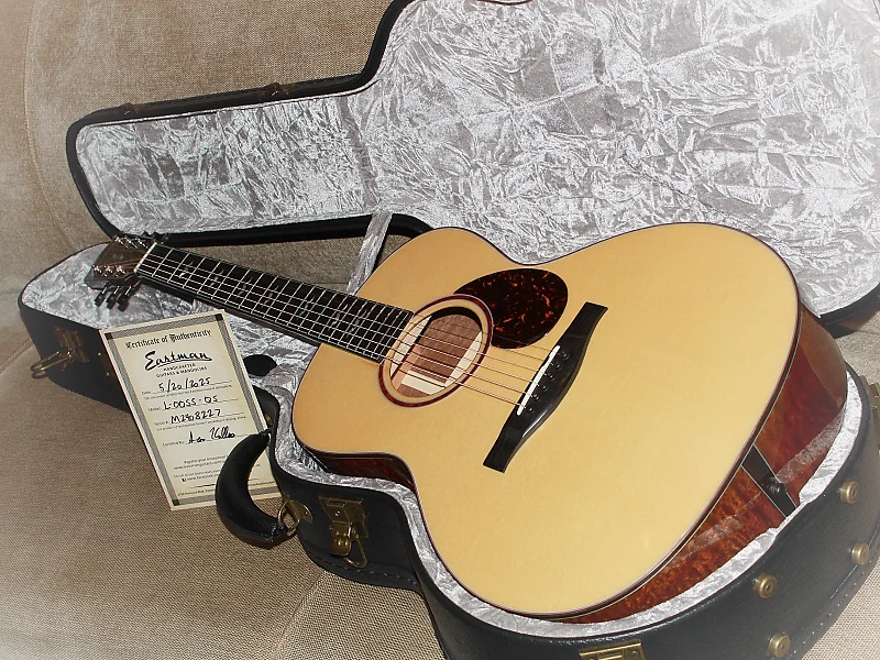 Настоящее произведение искусства от мастеров Eastman Guitars, эта модель демонстрирует безупречное мастерство, присущее их знаменитой серии Luthier. Выпускается ограниченной серией, она имеет потрясающую заднюю и боковые части из кленового сапеле AA-класса, превосходно сочетающиеся с премиальной верхней декой из европейской ели, выращенной на высокогорье. Эта комбинация обеспечивает богатую тональную палитру и визуально впечатляющую эстетику - действительно лучшие материалы, отобранные для выдающегося игрового опыта. Форма корпуса 00 обеспечивает исключительный комфорт, делая ее универсальным выбором как для спокойного времяпрепровождения на веранде, так и для выступлений под прожекторами. Продуманная конструкция - компактная верхняя дека, более широкая нижняя дека и тонкая, отзывчивая Soundbox - предлагает как интимные игровые возможности, так и смелую проекцию. Высококачественная древесина тонов и изысканное мастерство делают эту гитару выдающейся в своем классе, предлагая ощущение и звучание бутикового инструмента по невероятно доступной цене. Eastman продолжает поднимать планку с серией Luthier, и эта модель не является исключением.