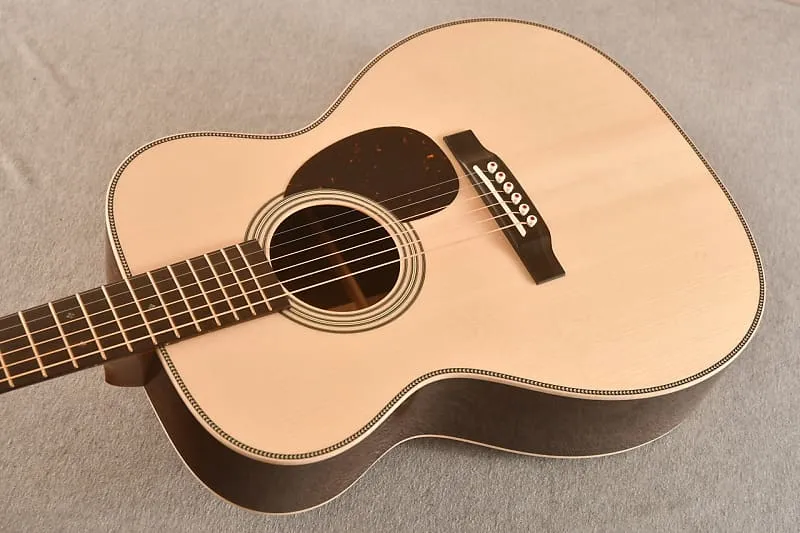 Я лично отобрал эту деку из ели Адирондак и спинку из палисандра на фабрике Martin в марте 2025 года. Мне очень понравилось изгибать и простукивать доску, чтобы найти отличные деки! Если вы когда-либо играли на OM-28 Modern Deluxe и хотели получить немного больше силы и тембра Martin, то эта гитара будет идеальным выбором для вас!