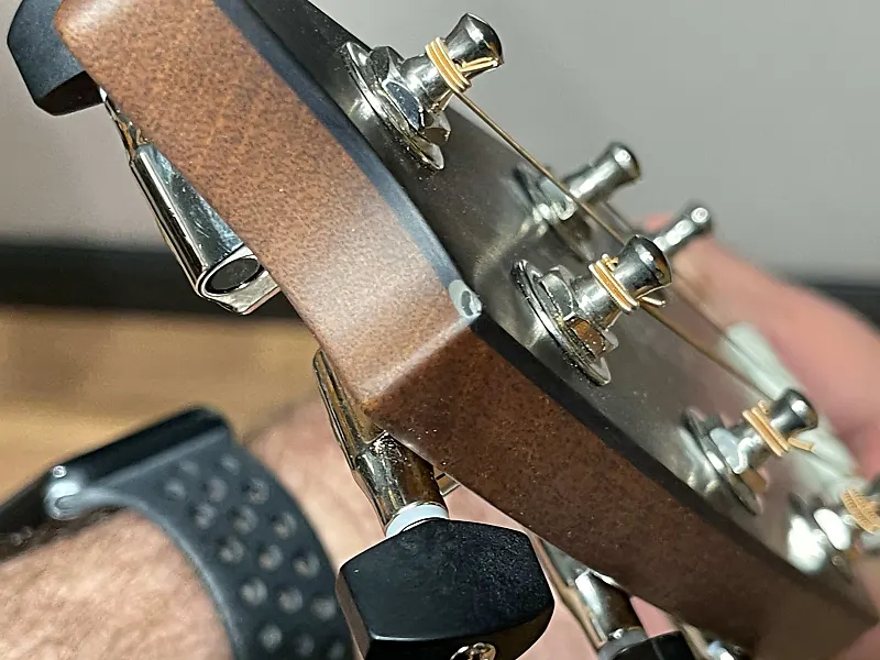 ПРИМЕЧАНИЕ: Эта гитара новая, но при дальнейшем осмотре на головке грифа видны несколько дефектов, которые задокументированы на фотографиях