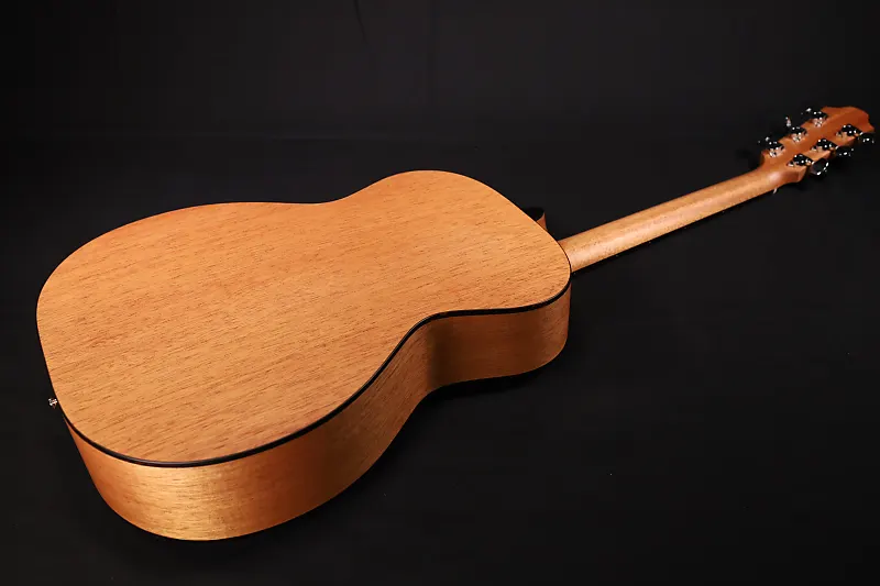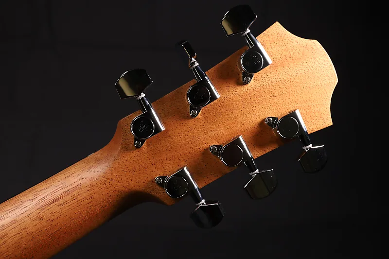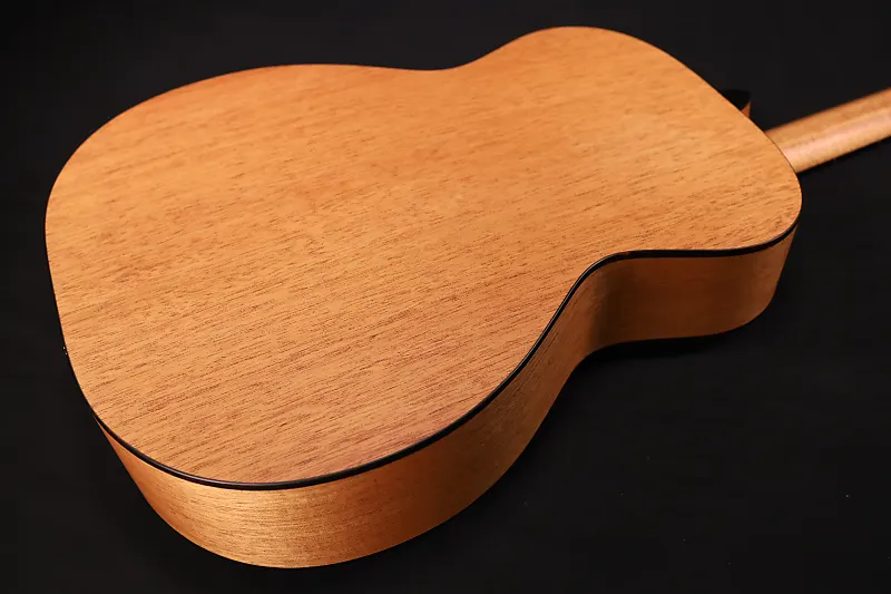 Элегантный янтарный вид махагониевой дека подчеркнут имитацией черепаховой окантовки корпуса и розеткой с двойным кольцом и вставкой из черного ореха.