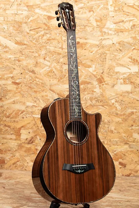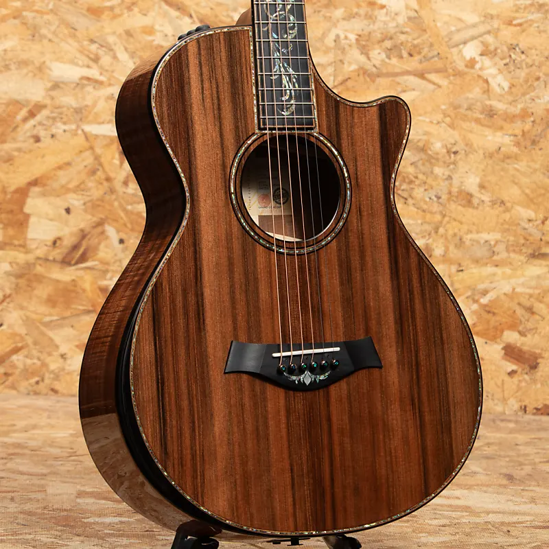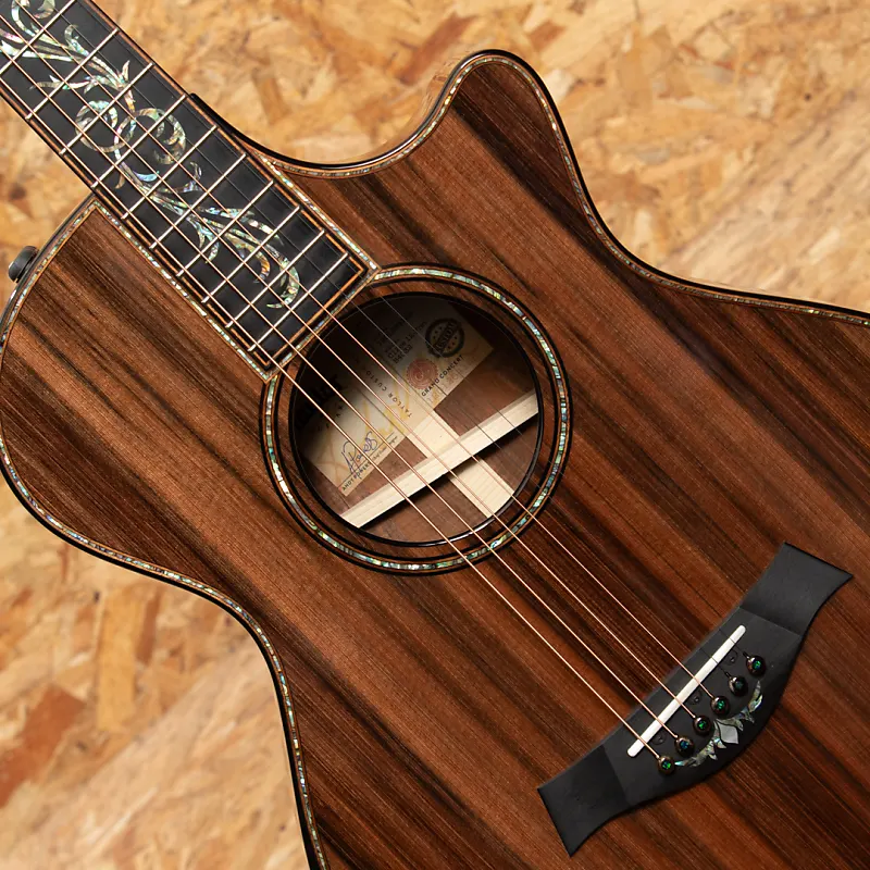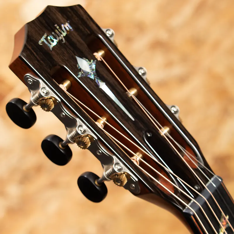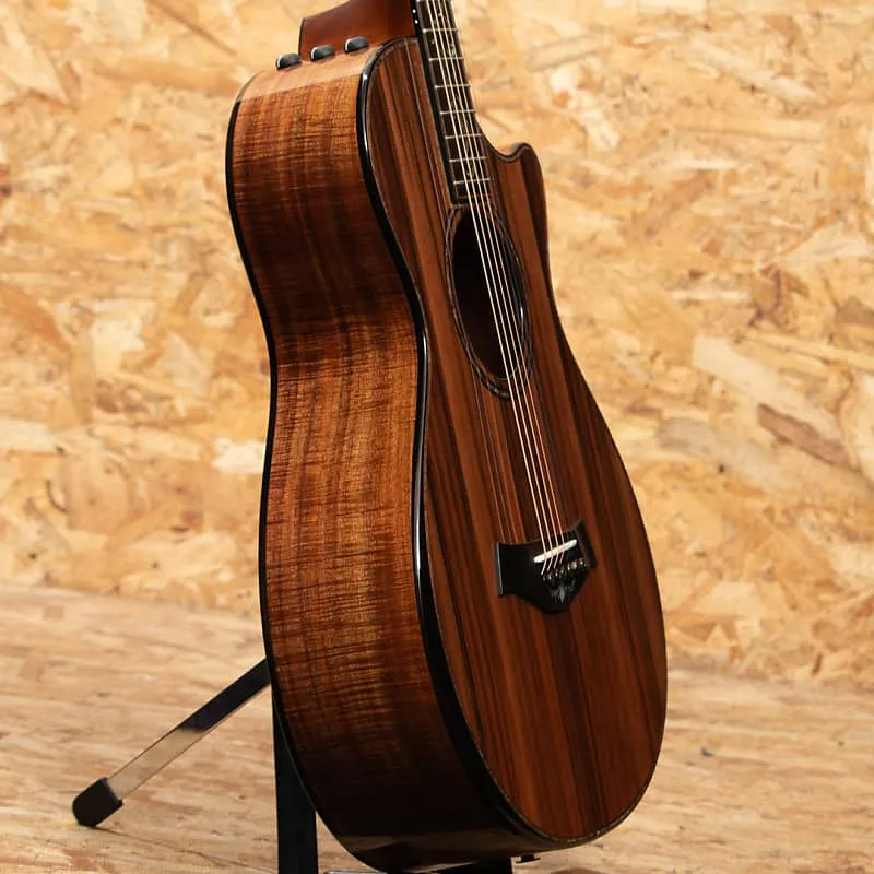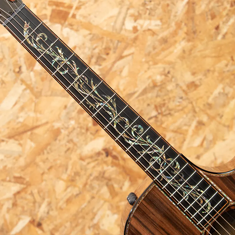 Taylor быстро развивалась с 2000-х годов и стала одним из ведущих мировых брендов акустических гитар благодаря инновационным конструкциям. В Японии и особенно в Соединенных Штатах она пользуется большой популярностью среди профессиональных музыкантов и имеет высокий уровень использования. Этот инструмент - индивидуальная модель, представленная на выставке NAMM 2024. Корпус большого концертного размера, верхняя дека из красного древесного спила, стороны и задняя дека из гавайского кедра высшего сорта, гриф из красного дерева, накладка и бридж из эбена, колковая головка с подлокотниками, система распорок V-Class и звукосниматели ES2. Для украшения используются перламутровые раковины пауа, а вставки в стиле Nouveau красиво сверкают на головке грифа, на накладке и на бридже. Темноокрашенные костяные заклепки бриджа украшены маленькими зелеными австралийскими опалами - тонкая деталь, которую вы не найдете нигде больше. Сочетание ультра-премиальных материалов Тонвоуды обеспечивают исключительное визуальное и звуковое восприятие. Соединение на 12-м ладу и спецификации грифового колка отлично сочетаются, создавая богатое тепло, широкий динамический диапазон и выдающуюся чувствительность. Оснащенный звукоснимателем ES2, инструмент обеспечивает реалистичное акустическое звучание даже при использовании линейного выхода. Это обязательный выбор для тех, кто ищет что-то особенное. Это лимитированная модель, произведена всего в 10 экземплярах по всему миру.