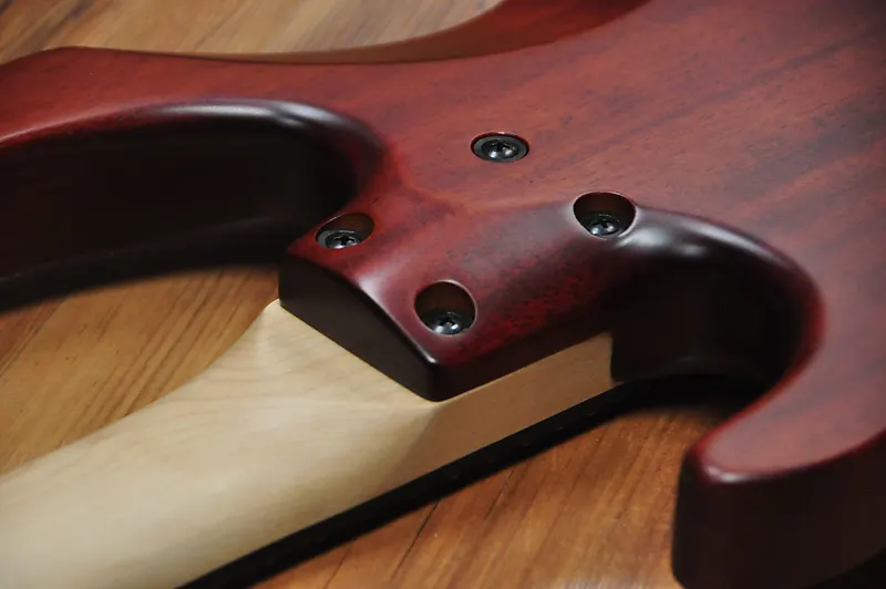 Тип грифа, выполненного с соединением «ласточкин хвост» для наклонного заднего подголовника, что, в свою очередь, увеличивает натяжение за верхним порожком, устраняя необходимость в струнодержателях и/или стержнях для удержания струн. Гриф с креплением на болтах соединяет гриф с корпусом гитары с помощью винтов или болтов, позволяя лучше контролировать, атаковать и поддерживать звук.