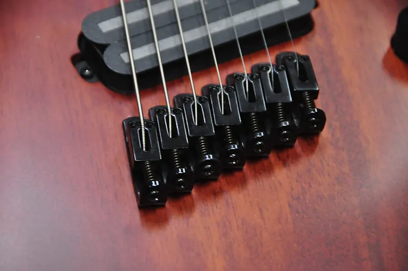 Для повышения точности интонации гитара оснащена индивидуальными седлами моста Jackson, расположенными с учетом двух длин мензуры.