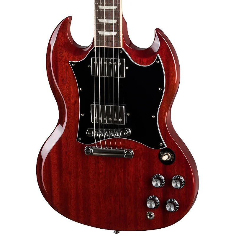 Gibson SG Standard сочетает в себе классический внешний вид и функции, связанные с моделями SG в стиле конца 60-х годов, которые многие искали. Гриф из красного дерева с закругленным профилем, гриф из розового дерева, длинное шиповое соединение грифа на 19-м ладу и прочный корпус из красного дерева обеспечивают основу для пения сустейна. Звукосниматели 490R и 490T Alnico II обеспечивают достаточную мощность для вождения. Черный, 5-слойный, полнолицевой медиатор выделяет этот SG Standard среди других... Поистине универсальная классика.