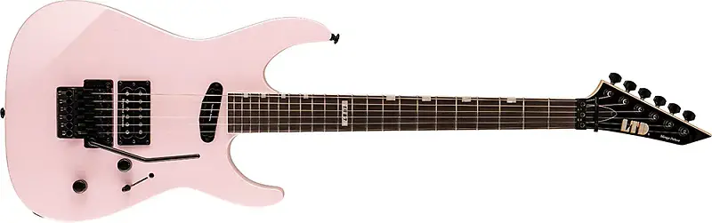 Конструкция болт-он - Мензура 25,5 - Корпус из ольхи - Гриф из трех частей клена с профилем Extra Thin U - Грифовая накладка из эбонита Macassar с 24 экстра-джамбо ладами - Радиус 14 - Кость грифа 42 мм - Черная фурнитура - Тремоло Floyd Rose 1000 - Колки LTD - Звукосниматели Seymour Duncan Hot Rail/Distortion - Струны D'Addario XL120 (.009/.011/.016/.024/.032/.042) Размеры: Длина 40,00 см - Глубина 10,00 см - Высота 108,00 см - Объем 0,043 м³ LTD # LTD MIRAGE DELUXE '87 - Pearl Pink # Гитары / Электрогитары # Серия MH
