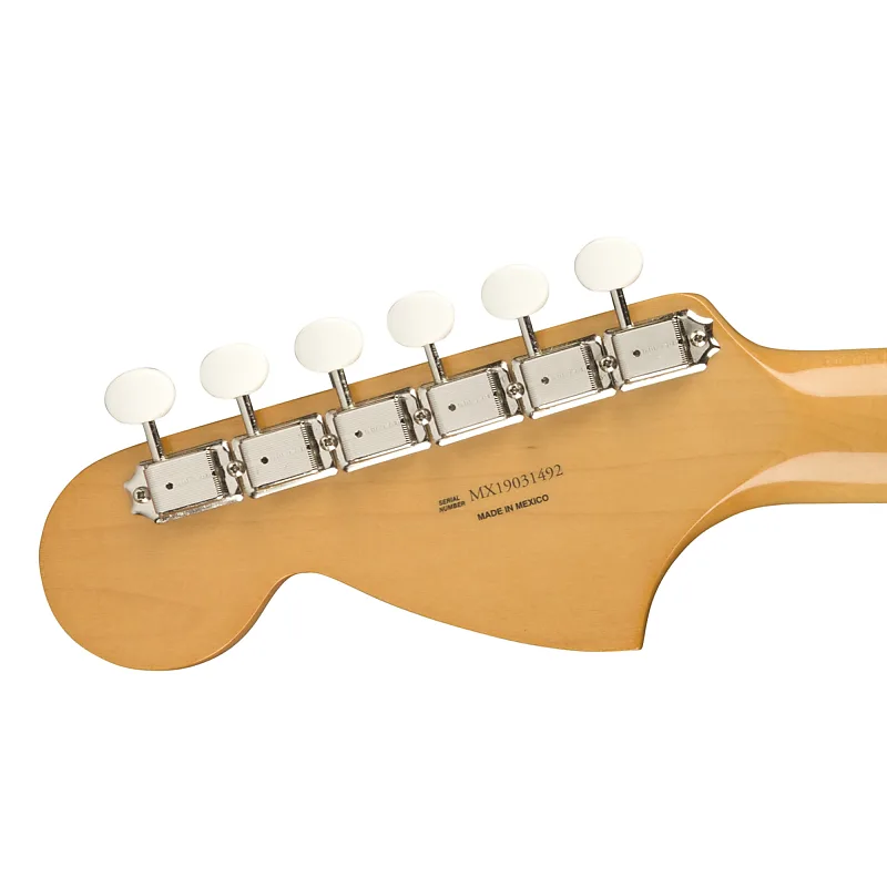 Для подлинного, винтажного звучания мы переработали пару односпиральных звукоснимателей Mustang, чтобы они звучали ближе к оригиналу. Кристально чистые и звонкие, они обладают четким, выразительным тоном, который сделал Fender известным. Для классического ощущения игры мы добавили 22 винтажные ладовые стержни на гриф с радиусом 7,25”, обеспечивая традиционное ощущение игры. Мост Mustang винтажного стиля, тремоло и колки обеспечивают эстетику оригинальной эпохи, надежную работу и стабильность настройки. Другие особенности включают классические переключатели звукоснимателей и хромированную фурнитуру. и четырехболтовая крепежная пластина для грифа. В комплекте находится роскошный чехол для гитары.