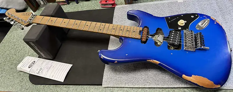 Существует очень мало гитар, которые так же знамениты, как любимый шестиструнный спутник Эдди Ван Халена, ласково именуемый "Франкенштейн". Эта гитара была попыткой Эдди объединить звук классической солидной гитары с единичной вырезанной декой и физические характеристики, а также функциональность тремоло-грифля Fender Stratocaster. Серия EVH Frankenstein "Frankie" - это гражданская версия культовой красно-черно-белой гитары Франкенстрат Эдди Ван Халена, с полностью состаренной отделкой.