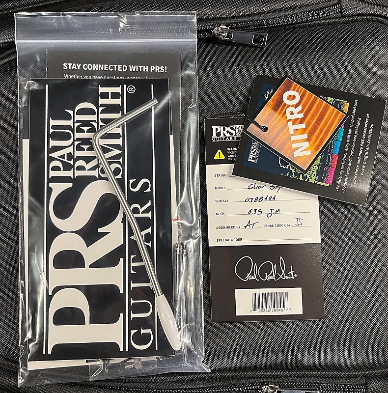 Другие высококачественные характеристики включают костяную кость в качестве верхнего порожка, формованную металлическую пластину для разъема с изгибом, которая делает подключение и отключение кабеля удобным, доработанные ручки управления, ладовую проволоку, немного меньшую по размеру, чем на большинстве электрогитар PRS (но больше, чем у большинства винтажных ладов), и двойное действие стержня PRS. стержень (доступен с передней части головки грифа для удобства использования).