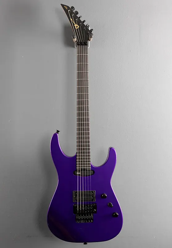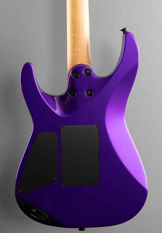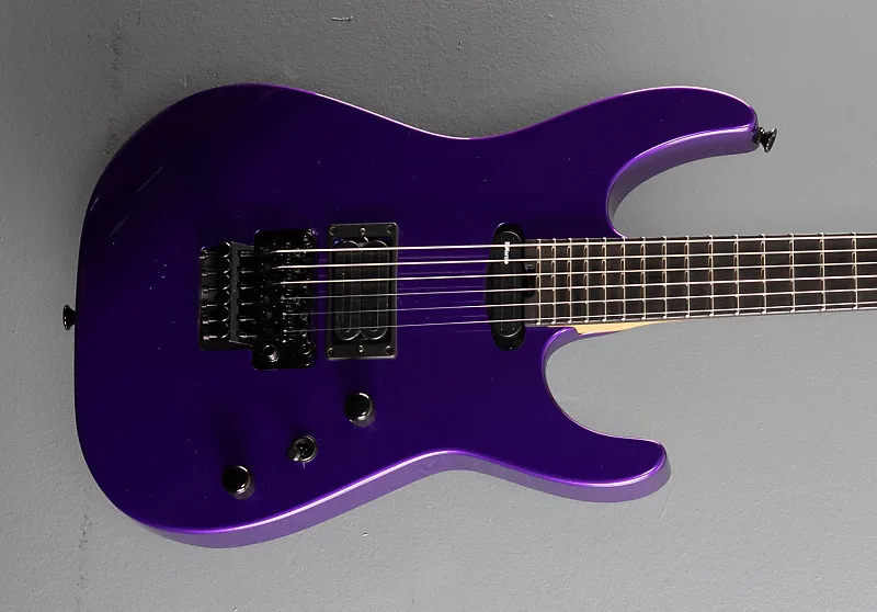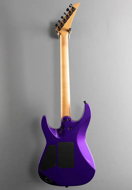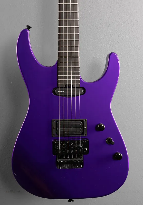 Фиолетовый металлик, корпус из ольхи, гриф из эбенового дерева с радиусом 12″-16″ и джамбо-ладями из нержавеющей стали на шее из карамелизованного кленового шпона с синей подсветкой Luminlay по бокам и графитовым усилением, длина мензуры 25,5″, ширина порожка 1 11/16", бридж DiMarzio X2N и звукосниматели DiMarzio Air Norton S на грифе, 3-позиционный переключатель с регуляторами громкости и тембра, тремоло-блок Floyd Rose Original, колки Gotoh, вес 8,0 фунтов, в комплекте с формованным жестким чехлом Charvel и сертификатом подлинности (COA).