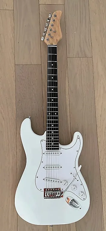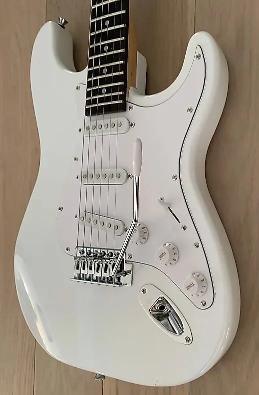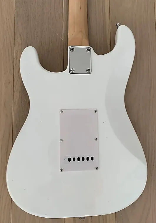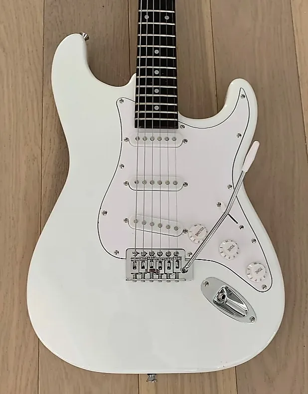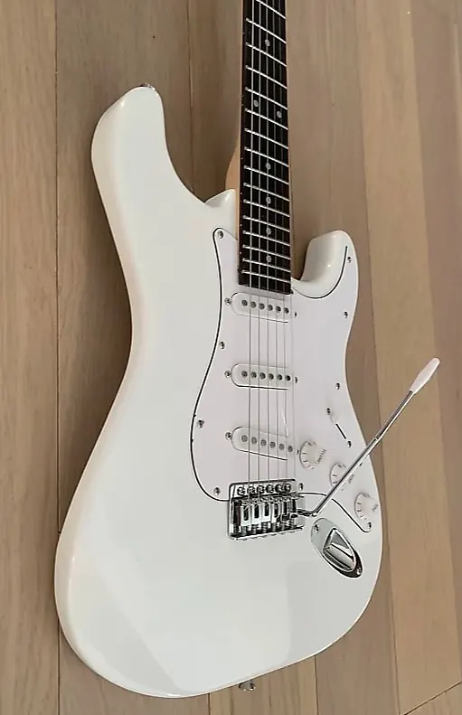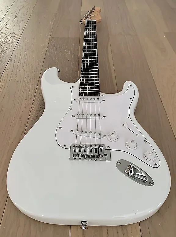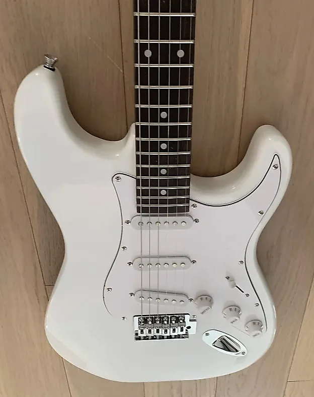 Совершенно новая красивая белая Strat. Я купил ее для молодого друга, который в итоге выбрал саксофон.