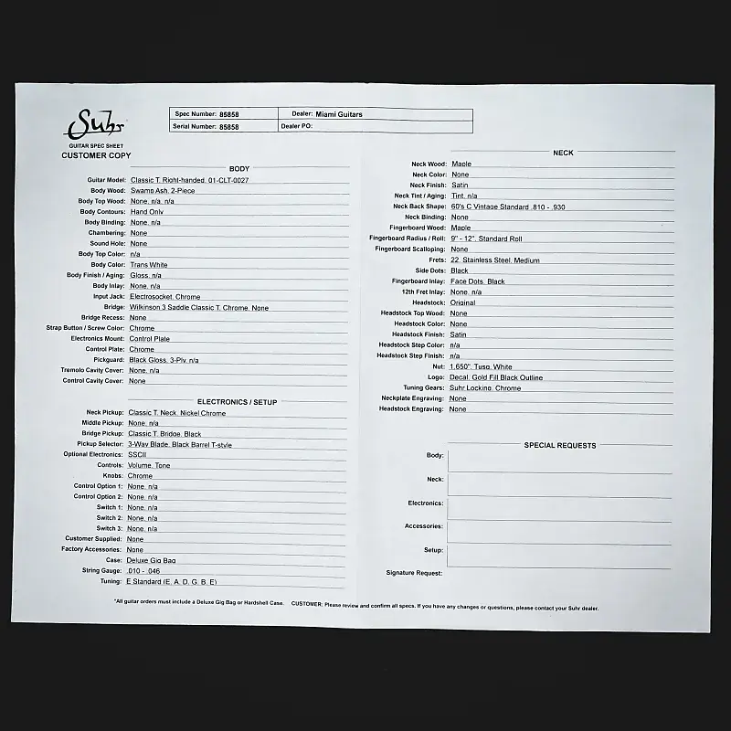 Miami-Gutiar является авторизованным дилером Suhr / включена заводская гарантия. Если у вас есть вопросы или сомнения относительно интересующего вас инструмента, пожалуйста, не стесняйтесь отправить нам сообщение или позвонить нам.