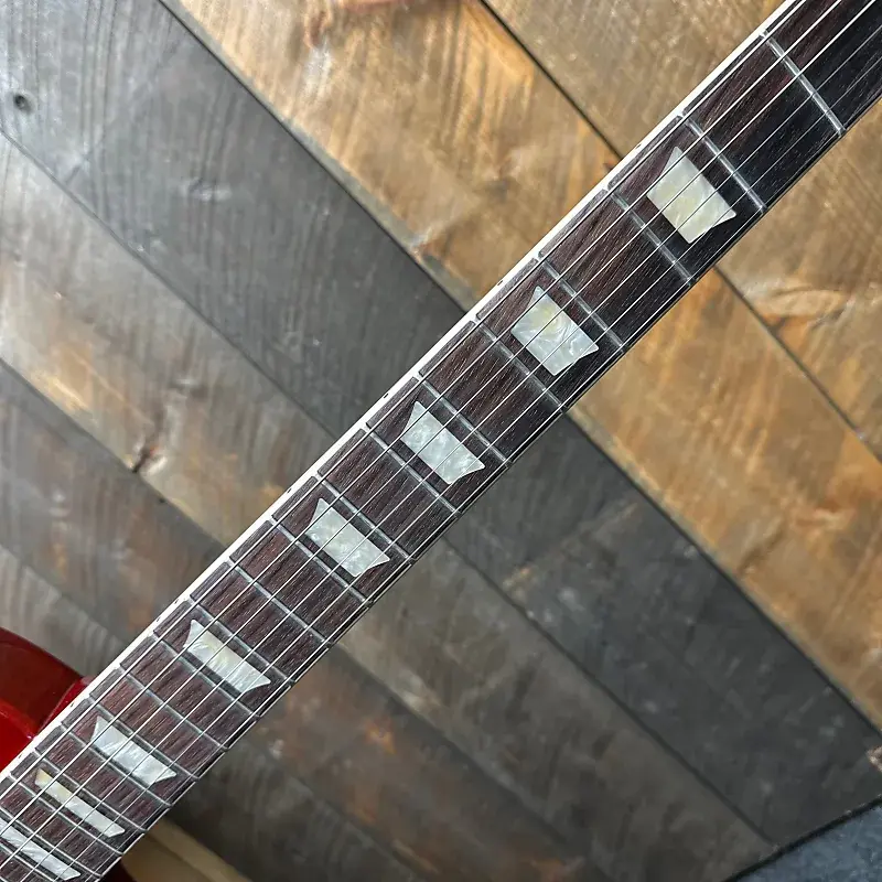 Гриф из красного дерева с традиционной пяткой, профилем SlimTaper и накладкой из палисандра с акриловыми трапециевидными инкрустациями