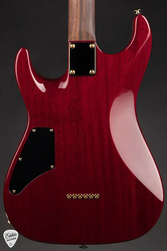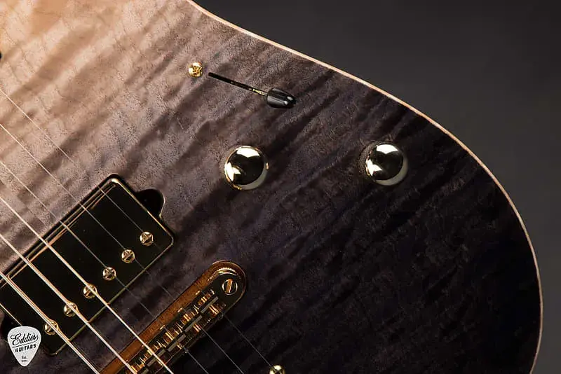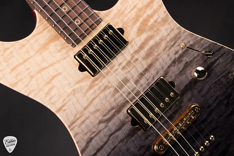 Корпус вырезан из двух частей массива красного дерева, что обеспечивает естественно теплое и резонансное звучание. Верх выполнен из двух частей кленового капа с рисунком, чья рябь играет под завораживающей отделкой Black Gradient - плавно переходящей от глубокой тени к сверкающему свету, что одновременно драматично и со вкусом. Обрисованные контуры для руки, кисти и туловища делают этот инструмент невероятно удобным при игре сидя и стоя.