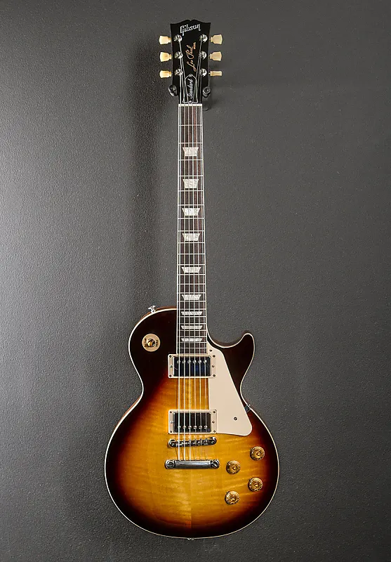 "Новый Les Paul Standard возвращается к классическому дизайну, который сделал его актуальным, желанным и любимым - формируя звук через поколения и музыкальные жанры. Он отдает дань уважения Золотой Эре инноваций Gibson и возвращает подлинность к жизни. Les Paul Standard 50's имеет корпус из цельного махагона с кленовой верхней частью, округлый гриф в стиле 50-х из махагона с накладкой из палисандра и трапециевидными вставками. Он оснащен ABR-1 - классическим мостом Tune-O-Matic, алюминиевым хвостовым струнодержателем, винтажными тюнерами deluxe с кнопками keystone и ручками aged gold tophat. Калиброванные звукосниматели Burstbucker 1 (гриф) и Burstbucker 2 (мост) оснащены магнитами AlNiCo II, потенциометрами с аудио закруглением и конденсаторами orange drop."