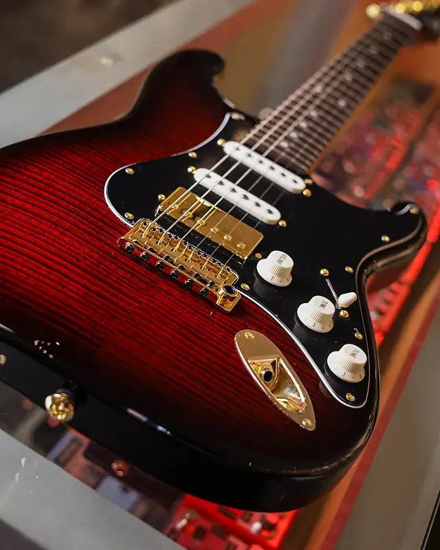 Этот Suhr Classic S Custom отличается поразительной глянцевой отделкой Chili Pepper Red Burst на корпусе из ольхи, увенчанным потрясающим топом Flame Maple. Благодаря безупречной настройке эта гитара создана для сцены и идеально подходит для того, чтобы с легкостью исполнять соло.