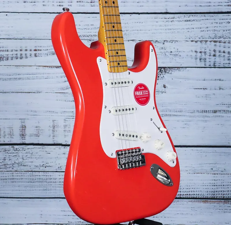 Squier Classic Vibe '50s Stratocaster в цвете Fiesta Red отдает дань уважения культовой Strat 1950-х годов с подлинными звукоснимателями Fender-Designed Alnico, обеспечивающими богатое винтажное звучание. Его тонкая шея формы "C" и гриф с радиусом 9,5" и узко-высокими ладами гарантируют комфортную игру, а тремоло система в винтажном стиле позволяет выразительно сгибать струны. С деталями головки в стиле 1950-х, никелированной фурнитурой и глянцевой отделкой грифа с винтажным оттенком, эта гитара сочетает классическую эстетику с современными характеристиками для взыскательных музыкантов.
