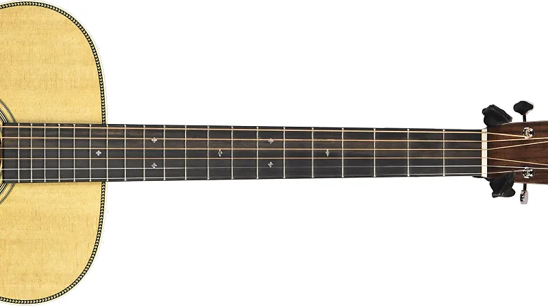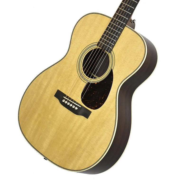 Более длинная дека и более широкий порожек по сравнению с моделью Martin 000, акустическая гитара Martin OM-28 в натуральной отделке предлагает чистое звучание аккордов с долгим сустейном. Благодаря сочетанию розового дерева с восточного побережья Индии и еловой древесины Sitka, гитара имеет теплое и сладкое звучание. Меньший размер корпуса делает ее удобной, но по звучанию эта гитара совсем не маленькая.