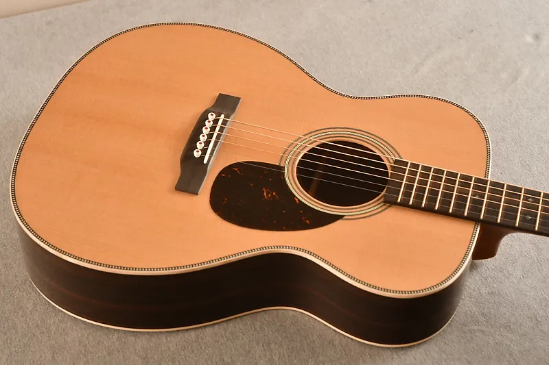С премиальными деталями, такими как элегантная инкрустированная розетка из абалона и золотые колки, OM-28E Modern Deluxe является настоящим шедевром для музыкантов, ищущих непревзойденное звучание и мастерство исполнения.